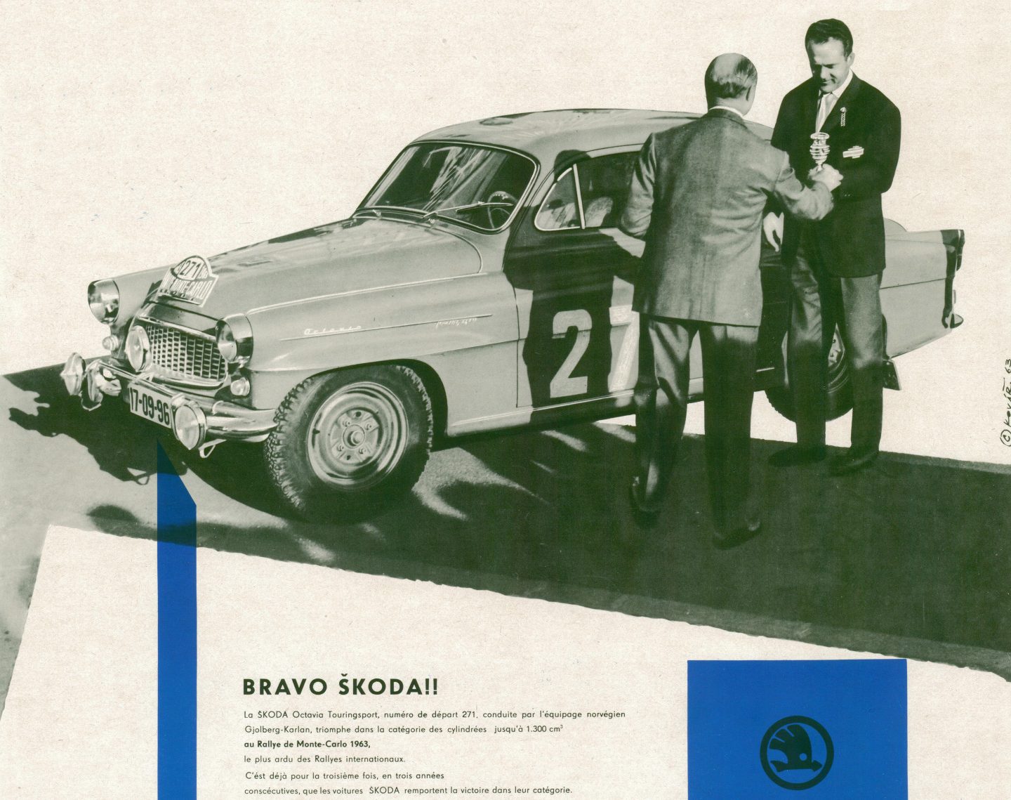 Chuỗi trận nổi tiếng lên đến đỉnh điểm với cú hat-trick ba chiến thắng liên tiếp của Octavia trong hạng mục của nó. Vào năm 1963, một lần nữa những người Scandinavi đã có sự chuẩn bị tốt nhất với đường đua Monte Carlo Rally khắc nghiệt. Lái chiếc Octavia TS 1200, Edward Gjolberg và Carl F. Karlan người Na Uy đã bỏ xa tất cả các đối thủ cạnh tranh ở hạng 1,3 lít của họ.